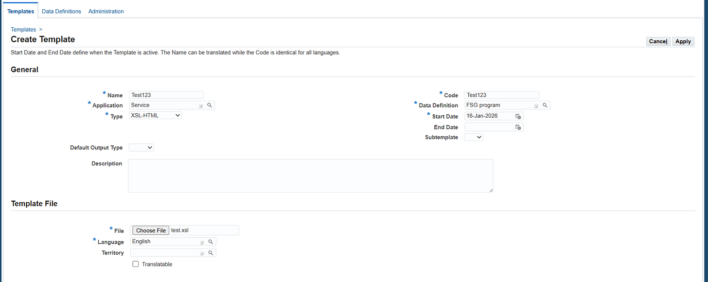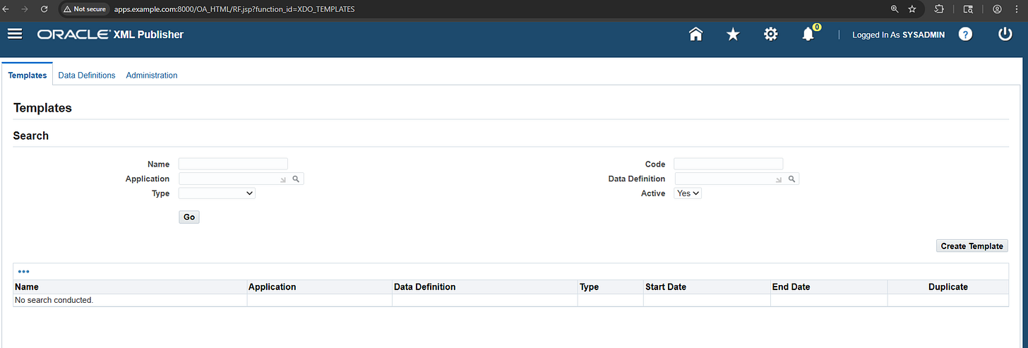 Để sử dụng chức năng trên, ta cần truy cập endpoint /OA_HTML/RF.jsp?function_id=XDO_TEMPLATES
